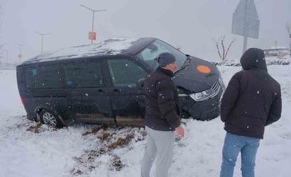 Karaman’da karla kaplı bir yolda, sürücüsünün direksiyon hakimiyetini kaybetmesi sonucu bir minibüs şarampole indi. Neyse ki, kazada yaralanan kimse olmadı.