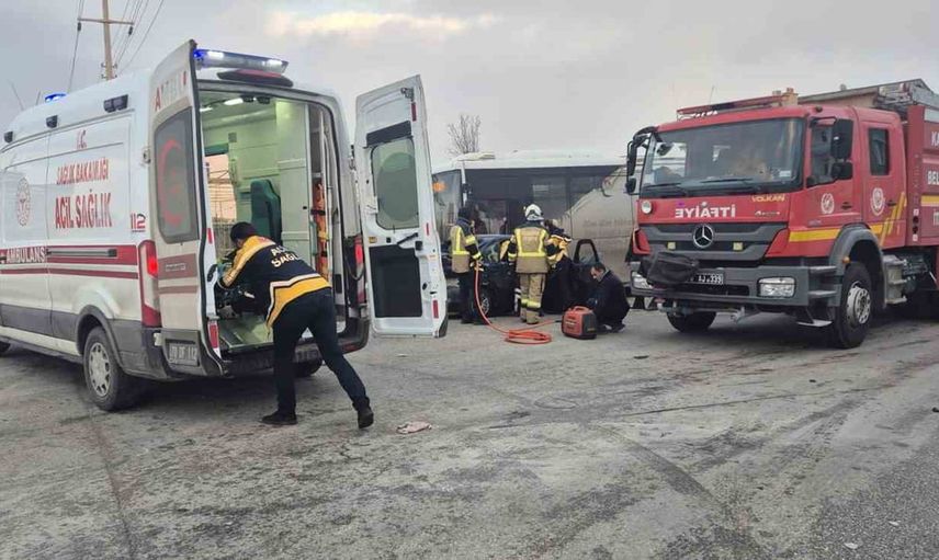 Karaman'da meydana gelen bir trafik kazasında, bir kamyonun çarptığı otomobil savrularak belediyeye ait bir yolcu otobüsüne çarptı. Kazada otomobilde bulunan iki kişi yaralandı.