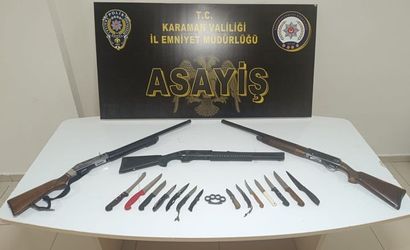 KARAMAN'DA POLİSİN YAPTIĞI UYGULAMALARDA RUHSATSIZ TÜFEKLER İLE UYUŞTURUCU VE KAÇAK TÜTÜN ELE GEÇİRİLİRKEN, ARANAN 3 ŞAHIS TUTUKLANDI.