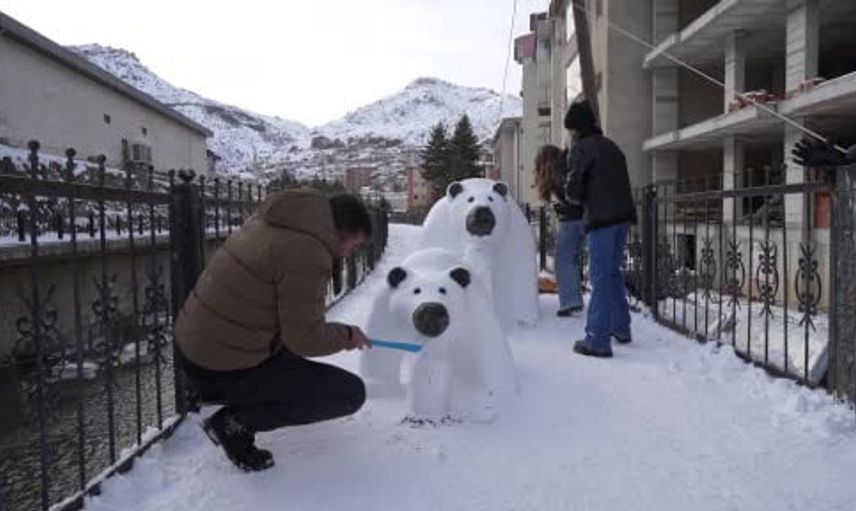 Cihan Oral, Gümüşhane'de etkili olan kar yağışını fırsata çevirerek kardan anne ayı ve yavrusunu şekillendirdi. Bu yaratıcı çalışma, çevrede büyük ilgi gördü ve vatandaşların beğenisi topladı.