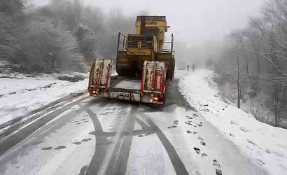 BARTIN'DA GERİ DÖNÜŞÜM TESİSİ'NE İŞ MAKİNESİ GÖTÜREN BİR TIR, KAR NEDENİYLE KAYARAK BARTIN-AMASRA ESKİ YOLUNU ULAŞIMA KAPATTI. TIR YAKLAŞIK 2.5 SAAT SÜRENİN ARDINDAN KURTARILARAK, YOL YENİDEN TRAFİĞE AÇILDI