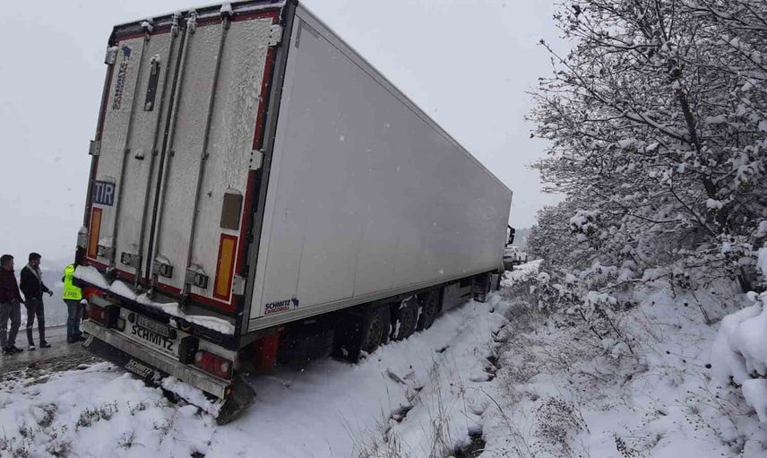 Bolu’nun Mudurnu ilçesi ile Ankara’nın Nallıhan ilçesini birbirine bağlayan karayolunda etkili olan yoğun kar yağışı, bir tırın şarampole devrilmesine neden oldu.