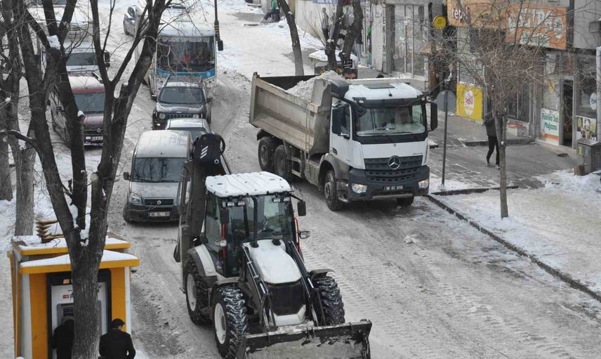Belediye ekipleri, özellikle vatandaşların yoğun olarak kullandığı Faikbey, Kazımpaşa ve Selahattin Filtekin Caddesi gibi ana yollar üzerinde kar küreme araçları ve iş makineleriyle çalışmalarını yürütüyor.