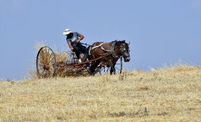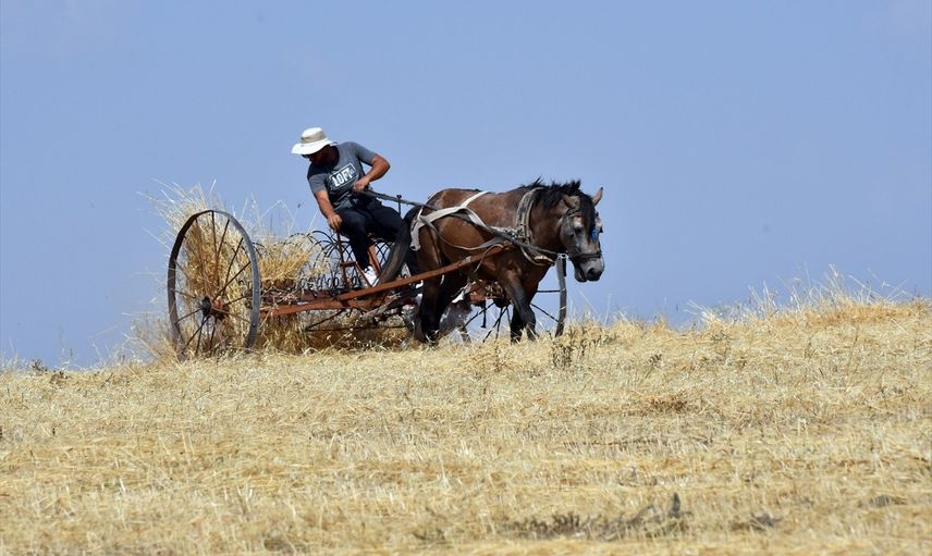 Kış mevsiminin uzun ve çetin geçtiği Kars'ta çiftçiler, arazilerindeki son buğdayları hasat ediyor.