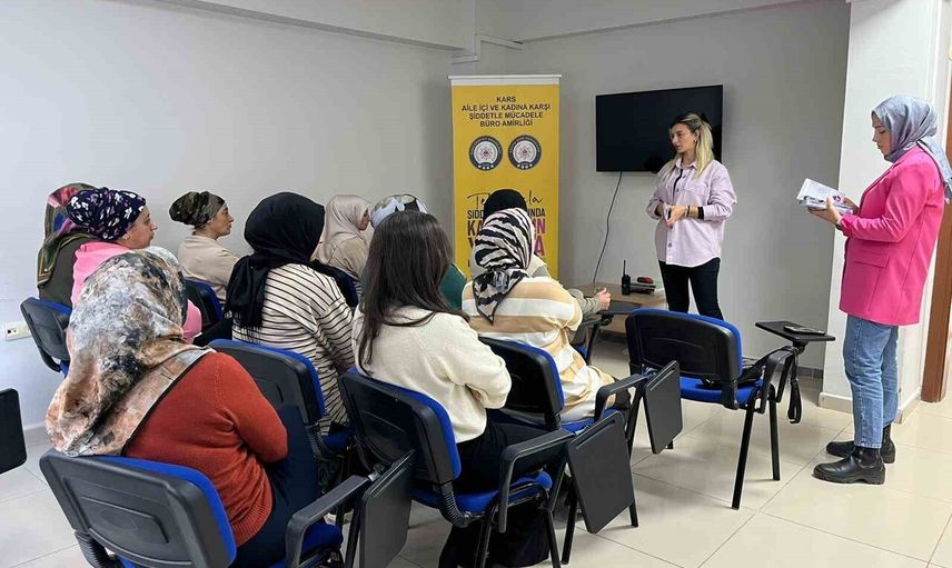 Kars’ta, kadınlara yönelik gerçekleştirilen bilgilendirme etkinlikleri çerçevesinde Kadın Destek Uygulaması (KADES) hakkında farkındalık artırıcı bir toplantı yapıldı.