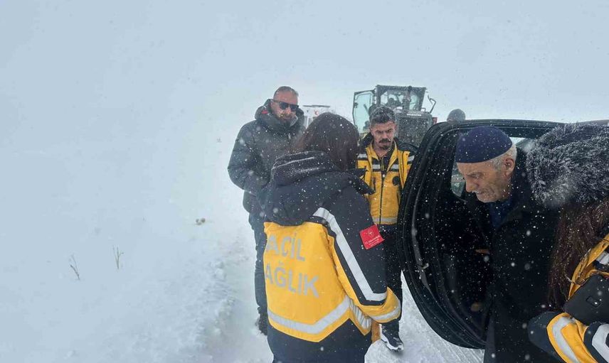 Sağlık ekipleri, kar nedeniyle ulaşamadıkları hastalara Özel İdare çalışanları tarafından taşındı. Bu hastalar, acil durumlarda hastanelere sevk edilmek üzere ambulanslara alındı.