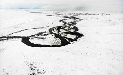 Kars, yoğun kar yağışının ardından doğanın muhteşem görüntüleriyle adeta bir açık hava sergisine dönüştü. Uçsuz bucaksız tarım alanları ve kıvrımlı menderesler, karın beyaz örtüsüyle birleşerek kartpostallık manzaralar sundu. Bu görüntüler, dron ile havadan kaydedildi.