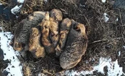Kars’ta yumak halinde uyuyan domuz ailesi böyle görüntülendi