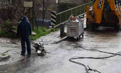 Kartal’da Hafriyat Kamyonu Elektrik Tellerine Takıldı