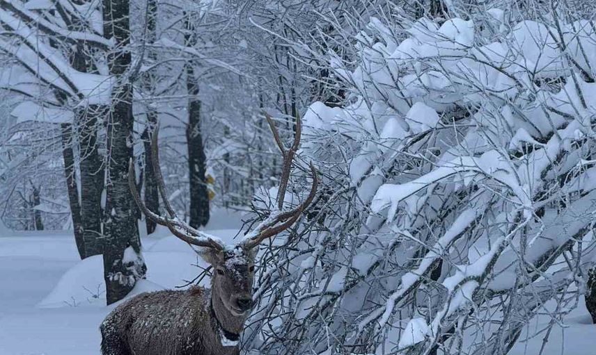 Karla Kaplı Kartepe’de Kızıl Geyik Güzelliği