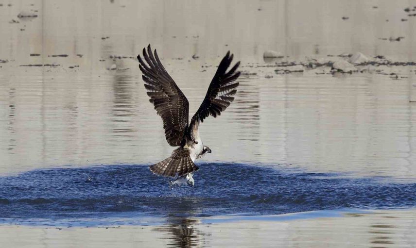 Kastamonu’nun Abana ilçesinde, balık fotoğrafçıları Ezine Çayı’nda avlanan balık kartallarını dikkatle kaydetti.