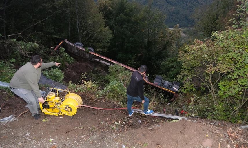 Kastamonu'nun Bozkurt ilçesinde şarampole devrilen tırın sürücüsü sıkıştığı yerden yaklaşık 2 saat süren çalışmanın ardından çıkarıldı.