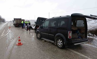 Kastamonu'da, işçileri taşıyan bir kamyonet, etkili olan kar yağışı nedeniyle yoldan çıkarak şarampole devrildi. Bu talihsiz kazada toplamda 7 işçi yaralandı.