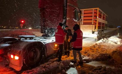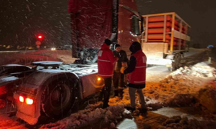 kar yağışı nedeniyle ulaşıma kapatılan Seydiler-İnebolu karayolu'nda, AFAD ve Kızılay ekipleri, yolculuk eden vatandaşlara sıcak ikramda bulundu.