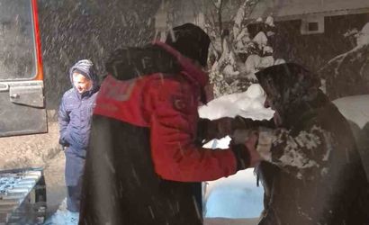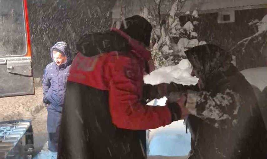 Talep üzerine, AFAD ve UMKE ekipleri hemen harekete geçti. Ekipler, kapalı olan köy yollarına ulaşmak için AFAD'a ait paletli aracını kullanarak zorlu bir mücadelenin içine girdi.