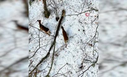 Kar yağışının etkisi altında, yaban hayatı da zor günler geçiriyor. Özellikle Küre Dağları Milli Parkı içerisinde yiyecek bulmaya çalışan karacalar havadan görüntülendi.