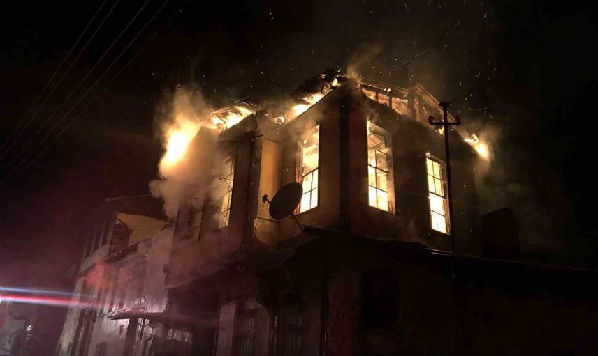 Yangın sonucu tarihi konak tamamen yok olurken, bitişikteki iki evinde çatısında ciddi hasar meydana geldi.