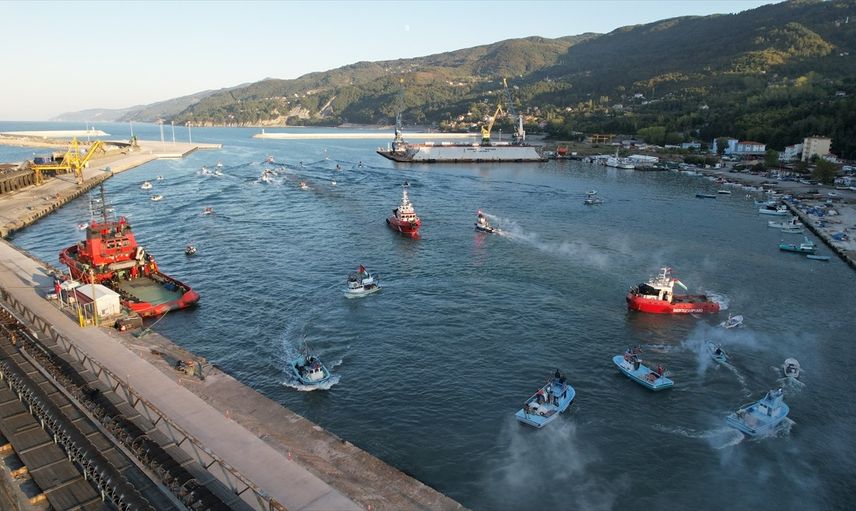 Kastamonu'nun İnebolu ilçesinde Küresel Sumud Filosu'na destek olmak ve İsrail'in saldırılarını protesto etmek amacıyla bir araya gelen balıkçılar, tekneleriyle Karadeniz'e açıldı.