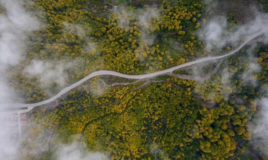 Kastamonu'da sonbaharın renkleri havadan görüntülendi. Karadeniz sahilindeki Abana, Bozkurt ve Çatalzeytin ilçelerinin yüksek rakımlarındaki ormanlık alanlar, sonbaharın gelişiyle yeşil, sarı ve kahverenginin farklı tonlarını yansıtıyor.
