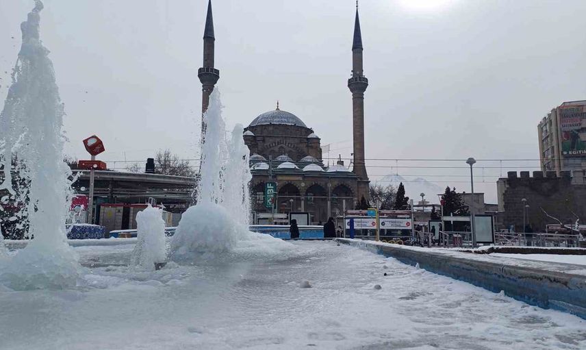 Kayseri’de etkili olan soğuk hava, yaşamı olumsuz yönde etkiledi. Kentin Pınarbaşı ve Tomarza ilçelerinde termometreler -23 dereceleri gösterirken, şehirdeki süs havuzları da dondu.