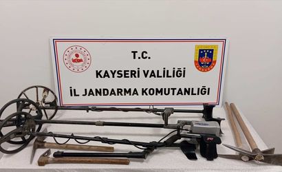 Kayseri'nin Yeşilhisar ilçesinde izinsiz kazı yapan 4 şüpheli gözaltına alındı. Bölgede yapılan aramada, 3 dedektör ile 4 kazma ele geçirildi.