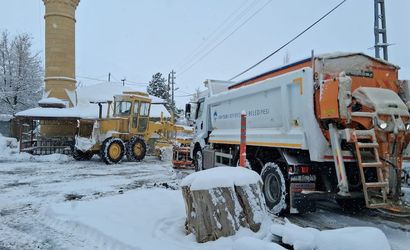 Kayseri Büyükşehir Belediyesi, gece yarısından sabaha kadar süren yoğun kar yağışı ve tipi sonrası ulaşımın aksamaması için karla mücadele çalışmalarına hız kesmeden devam ediyor.
