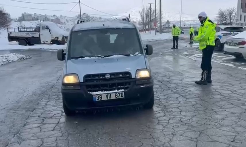 Kayseri'de, kış şartlarının etkili olduğu günlerde trafik polisleri, araçların güvenliğini sağlamak adına önemli bir uygulama gerçekleştiriyor.