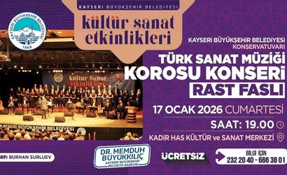 Büyükşehir Belediyesi Konservatuvarı Türk Sanat Müziği Korosu tarafından düzenlenen Rast Faslı Konseri, Kayserili sanatseverleri Türk Musikisi’nin zarafetiyle buluşturacak. Şef Burhan Surluev yönetimindeki konserde, 60 kişilik koro, 10 sazende ve 10 solist, Türk Sanat Müziği’nin seçkin eserlerini seslendirecek. Klasik fasıl geleneğinden solo eserlere, potporiden özel şarkılara kadar uzanan programda toplamda 28 eser yer alacak.