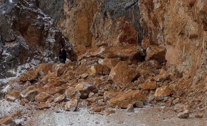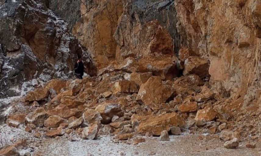 Erzincan'ın Kemaliye ilçesinde bulunan Taş Yolu, yamaçtan kopan kaya ve taş parçalarının yol üzerine düşmesi sonucu geçici olarak trafiğe kapatıldı.