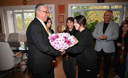 Ziyaretin ardından öğrenciler, Başkan Topaloğlu’na çiçek takdim ederek Öğretmenler Günü'nü kutladı. Ayrıca, Başkan Topaloğlu, orkestra üyelerine bir otelde yemek sözü verdi.