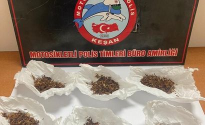 Edirne'nin Keşan ilçesinde, Keşan İlçe Emniyet Müdürlüğü ekipleri, bir şahsı şüphe üzerine durdurdu. Olay, Yörük Mahallesi Bayrak Sokak'ta gerçekleşti.