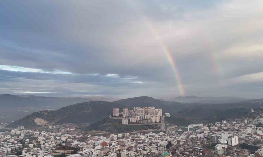Vatandaşlar, gökkuşağının oluştuğu anları cep telefonlarıyla kaydetmek için dışarıya çıktılar. Oluşan bu renk cümbüşü, dron yardımıyla da görüntülendi.