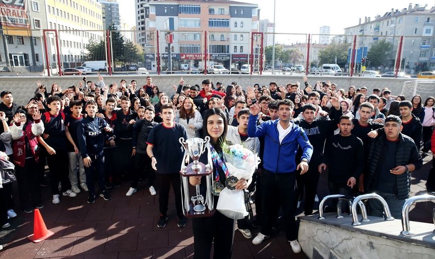 Kayseri'deki Selçuklu Anadolu Lisesi'nde öğrenim gören Elif Ceren Uzunçakmak, Kick Boks Dünya Şampiyonası'nda elde ettiği başarıyla okulunda özel bir sürprizle karşılandı.