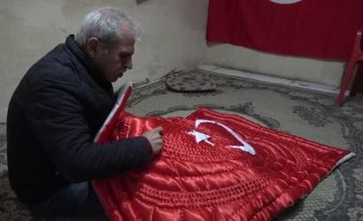 KİLİS'TE YORGANCI USTASI CUMA YILDIZ, TÜRK BAYRAĞI SEVGİSİYLE 45 YILDIR AY YILDIZLI YORGANLAR DİKEREK HEM GEÇİMİNİ SAĞLIYOR HEM DE YOK OLMA TEHLİKESİYLE KARŞI KARŞIYA OLAN MESLEĞİNİ YAŞATMAYA ÇALIŞIYOR.