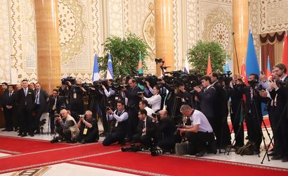 Tacikistan’ın başkenti Duşanbe’de Bağımsız Devletler Topluluğu (BDT) Devlet Başkanları Konseyi Toplantısı gerçekleştirildi. Tacikistan Cumhurbaşkanı İmamali Rahman'ın (sağ 5) ev sahipliğinde tertip edilen toplantıya Rusya Devlet Başkanı Vladimir Putin (sol 5), Azerbaycan Cumhurbaşkanı İlham Aliyev (solda), Belarus Cumhurbaşkanı Aleksandr Lukaşenko (sol 3), Özbekistan Cumhurbaşkanı Şevket Mirziyoyev (sağ 2), Kazakistan Cumhurbaşkanı Kasım Cömert Tokayev (sol 4), Kırgızistan Cumhurbaşkanı Sadır Caparov (sağ 4), Türkmenistan Cumhurbaşkanı Serdar Berdimuhamedov (sağ 3) ve Ermenistan Başbakanı Nikol Paşinyan (sol 2) ile BDT Genel Sekreteri Sergey Lebedev (sağda) katıldı.