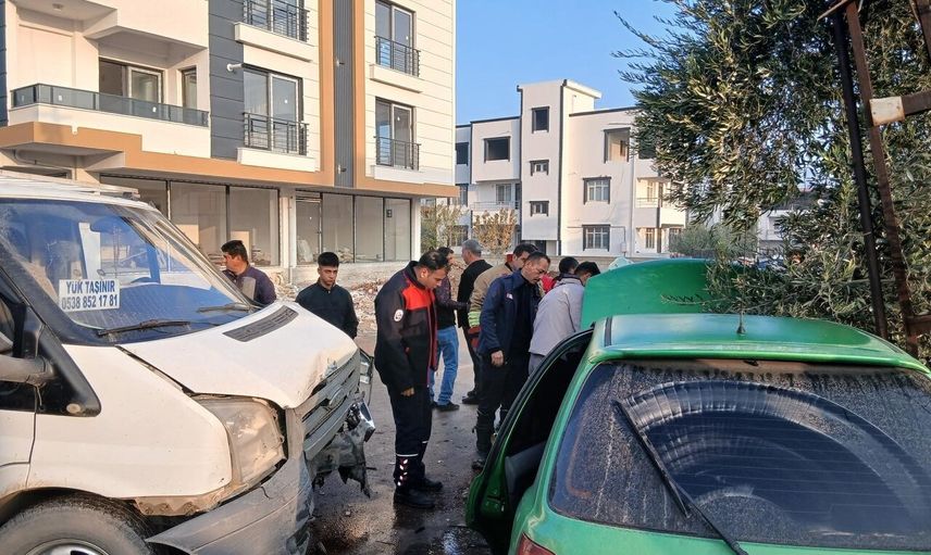 Hatay'ın Kırıkhan ilçesinde, Gazi Mahallesi'nde yaşanan kazada kamyonet ve otomobil çarpıştı.