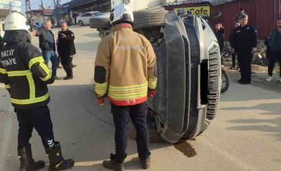 Hatay iline bağlı Kırıkhan ilçesinde, iki otomobilin çarpışması sonucu bir trafik kazası meydana geldi. Kazada yan yatan otomobilde bulunan iki kişi yaralandı.