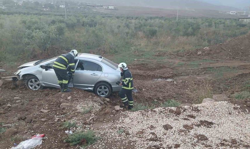 Hatay’ın Kırıkhan ilçesinde sürücünün direksiyon kontrolünü kaybetmesi sonucu bir otomobil, zeytin bahçesine uçtu. Kaza, Kırıkhan - Hassa çevre yolu üzerindeki Güzelce Mahallesi mevkiinde gerçekleşti.