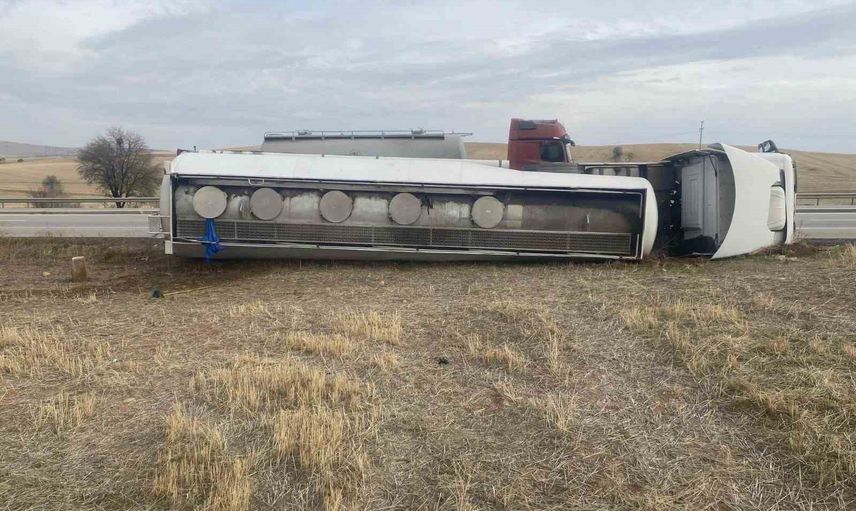 Kırıkkale-Kırşehir D-765 karayolunun Cankurtaran mevkiinde, bir akaryakıt tankeri kontrolden çıkarak şarampole devrildi. Kazada, tanker sürücüsü D.A. (22) yaralandı.