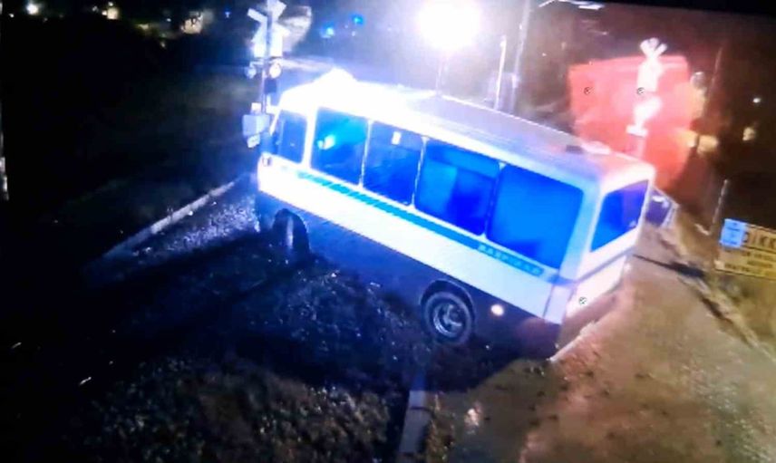 Trenin dolmuşa çarpmasıyla birlikte araç metrelerce savruldu ve ciddi bir şekilde hasar aldı. Neyse ki kazada herhangi bir yaralanma meydana gelmedi.