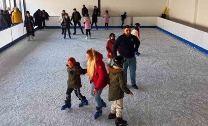 Kırıkkale'de yarıyıl tatilinde karnesini getiren çocuklar, belediye tarafından düzenlenen ücretsiz buz pistinde paten kaymanın tadını çıkarıyor.
