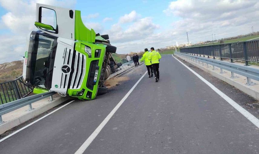 Edinilen bilgilere göre, saat 19.00 sıralarında çiftliğe yem taşıyan tır, köprüye viraj sonrası girdiği esnada devrildi. Neyse ki kazada herhangi bir can kaybı ya da yaralanma yaşanmadı.