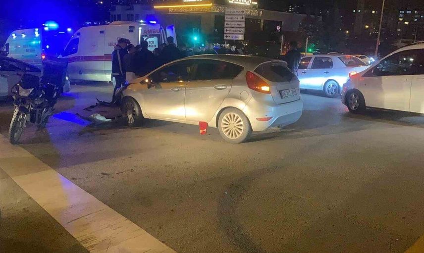 Ankara’nın Etimesgut ilçesinde meydana gelen kazada, kırmızı ışık ihlali yapan bir otomobil, yol üzerinde bulunan iki motosiklete çarptı.