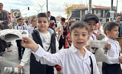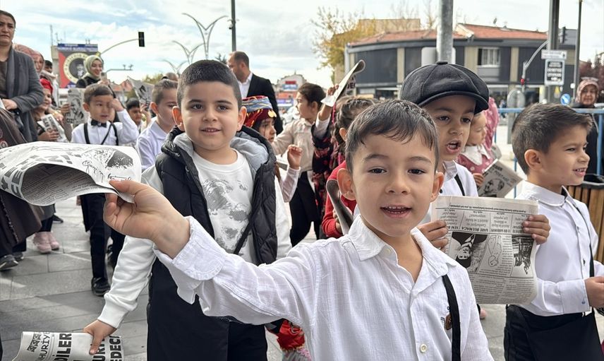 Kırşehir'de anaokulu öğrencileri, Cumhuriyet'in ilan edilişinin temsili gazetesini vatandaşlara dağıttı. Dönemin kıyafetlerini giyen 27 öğrenci, gazete dağıtımı için Cacabey Meydanı ve Ankara Caddesi'ne geldi.