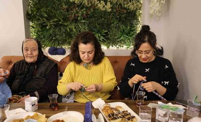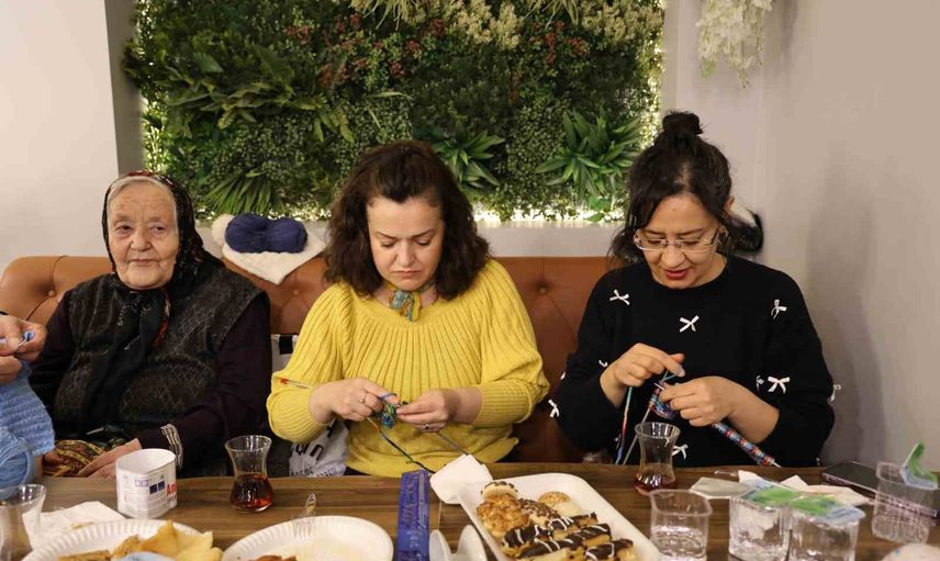Kadınlar, örgü örmenin yanı sıra eğlenceli vakit geçirmeyi de ihmal etmedi. Halk ozanı Ayşe Tekin, yöresel parçalarıyla atkı, bere ve kazak ören kadınlara destek sundu.