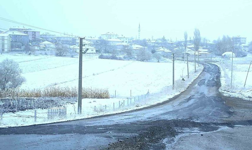 Kırşehir'in Akçakent ilçesinde, dün akşam saatlerinde hava sıcaklıklarının düşmesiyle birlikte yüksek kesimlerde kar yağışı gerçekleşti.