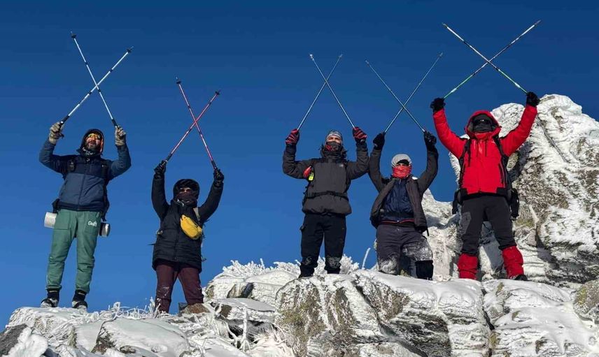 Zirvede Türk bayrağını açan dağcılar, İstiklal Marşı’nı coşkuyla okudular. Tırmanışın ardından ekip, yaklaşık 2,5 saat süren inişi dağın batı şeridinden gerçekleştirerek etkinliği başarıyla tamamladı.