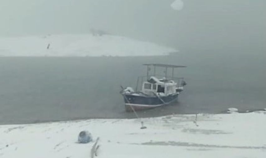 Yoğun kar yağışı ile birlikte görüş mesafesinin birkaç metreye kadar düştüğü Keban Baraj Gölü’nde, balıkçılar güvenliğini sağlamak amacıyla teknelerini kıyıya çekti.