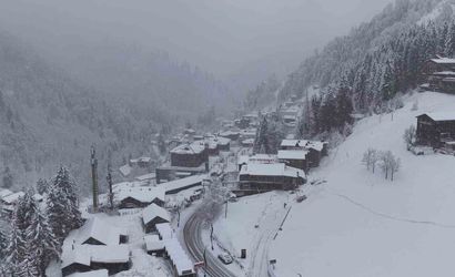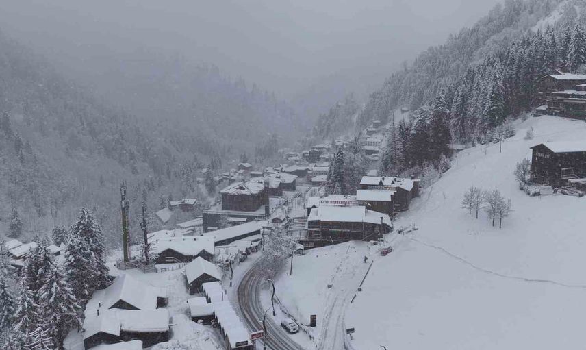 Rize’nin Çamlıhemşin ilçesinde yer alan dünyaca ünlü turizm merkezi Ayder Yaylası, etkili kar yağışının ardından beyaza büründü.