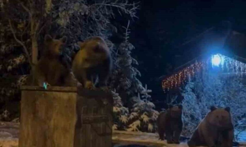 Geçtiğimiz günlerde meydana gelen olayda, çöp konteynerini karıştıran bir anne ayı ile üç yavru ayı, kar yağmasına rağmen hala kış uykusuna yatmamalarıyla dikkat çekti.
